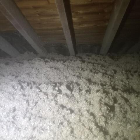 Mrs. Hanley had an attic that wasn't enough insulated. There were less than 10 in. of cellulose fibers in her attic which was equivalent to an R-38 value. The air circulation was almost non-existent which made the attic very humid.